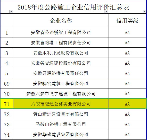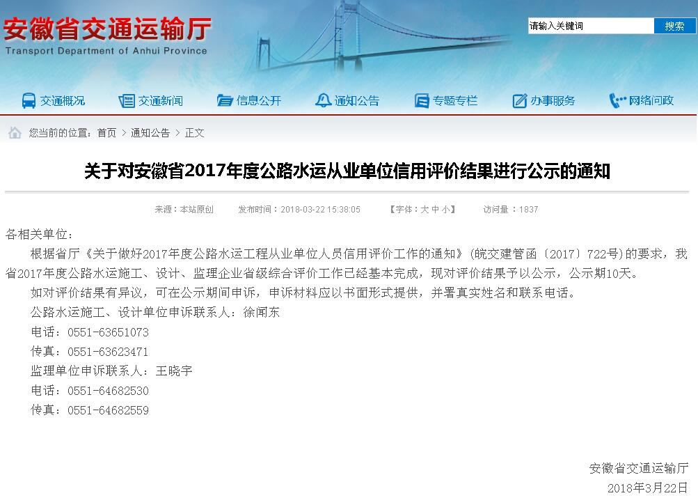 2018年企業(yè)信譽(yù)等級(jí)證明材料安徽省交通運(yùn)輸廳AA級(jí)信譽(yù)等級(jí)查詢網(wǎng)址: