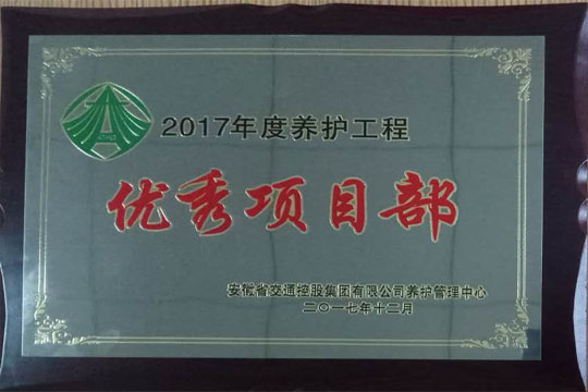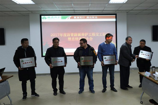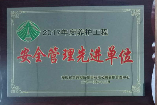 2017年12月14日,2017年度瀝青路面養(yǎng)護工程交工驗收暨總結表彰大會在合肥召開,六安市交通公路實業(yè)有限公司2017-2019年度安徽省部分高速公路瀝青路面專項養(yǎng)護工程03標項目經理部榮獲2017年度養(yǎng)護工程”優(yōu)秀項目部“和”安全管理先進單位“稱號。